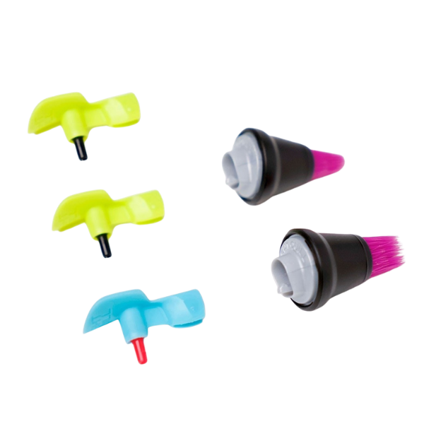 Ce Spraybrush Cap Set comprend plusieurs embouts conçus pour varier les effets et affiner le contrôle de votre aérosol :