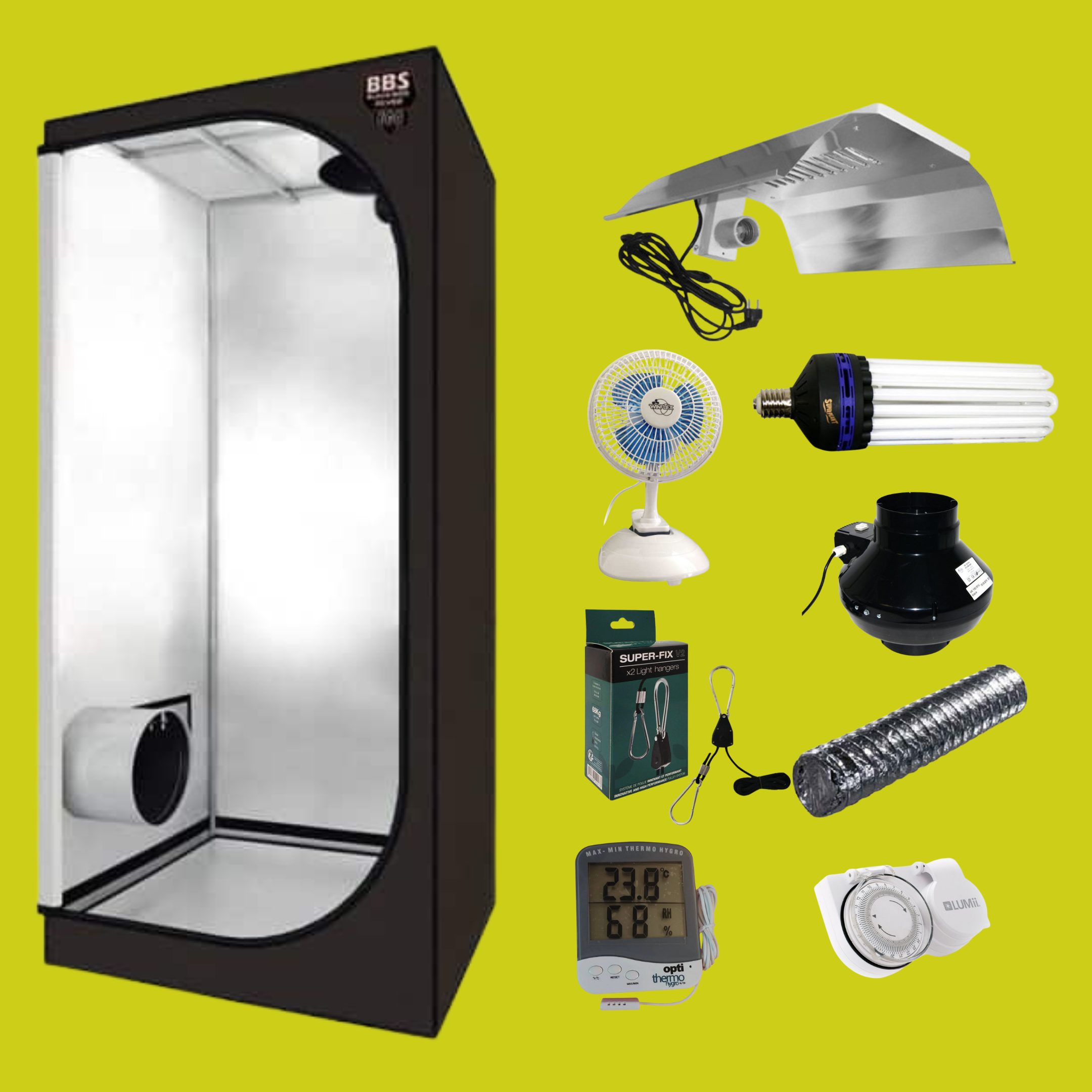 Pack chambre de culture 90x90x200 équipé d’un kit CFL 250W Dual.